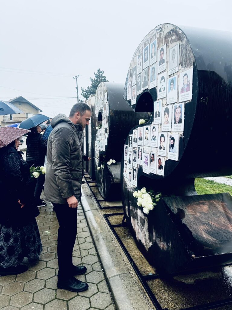 Након парастоса у манастиру Грачаница грађани су положили беле руже на спомен-инсталацију ,,MISSING“ и споменик жртвама Погрома у дворишту Дома културе у Грачаници.