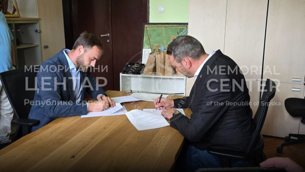 Вршилац дужности директора Музеја жртава геноцида г. Бојан Арбутина и директор Меморијалног центра Републике Српске г. Денис Бојић потписали су данас у просторијама Музеја Меморандум о сарадњи. Препознајући значај заједничког деловања на очувању сећања на жртве геноцида, ратних злочина и свих облика страдања српског народа у XX и почетком XXИ века, као и на промоцији истине о овим догађајима, потписници Меморандума изразили су спремност за успостављање и развој свеобухватне сарадње.
