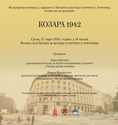 Музеј жртава геноцида приређује предавање под називом „Козара 1942“ наших драгих колега историчара г. Бојана [...]