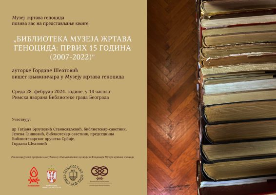 ПРЕДСТАВЉАЊЕ КЊИГЕ ,,БИБЛИОТЕКА МУЗЕЈА ЖРТАВА ГЕНОЦИДА: ПРВИХ 15 ГОДИНА“