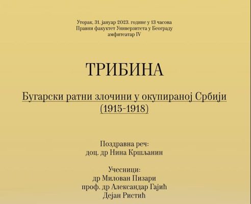 Трибина: ,,Бугарски ратни злочини у окупираној Србији (1915-1918)“, 31. јануара на Правном факултету