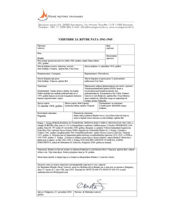 Допуне на списку ратних жртава 1941–1945. године: Бранко (Иво) Лековић, страдао 1944. године